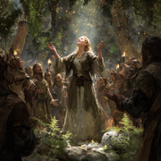 Lugoun a wicca style female druid-priest leading a congregation 227035ff-81a7-4cd9-b223-62b90c7c3f4c.png